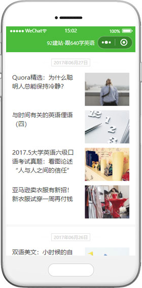 这套英语四六级中英文对照在线阅读小程序模板,可以用于开发英语练习类微信小程序,具有文章阅读、分享给好友等功能,非常不错的英语阅读类微官网模板。